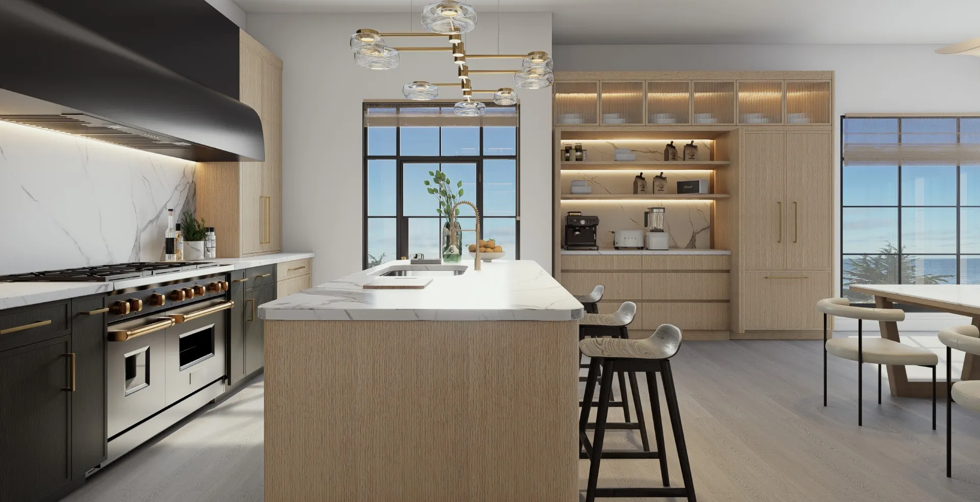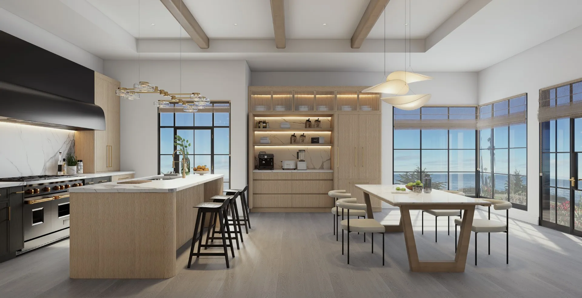 Coastal style captures the quiet elegance of California’s shoreline, light-filled, effortless,and beautifully composed. It balances relaxed comfort with architectural precision, using soft palettes, organic materials, and refined geometry to create interiors that feel open, inviting, and timeless. Rooted in MARRAM’s philosophy of modern casual sophistication,this style reflects the rhythm of coastal living—natural, elevated, and gracefully refined.