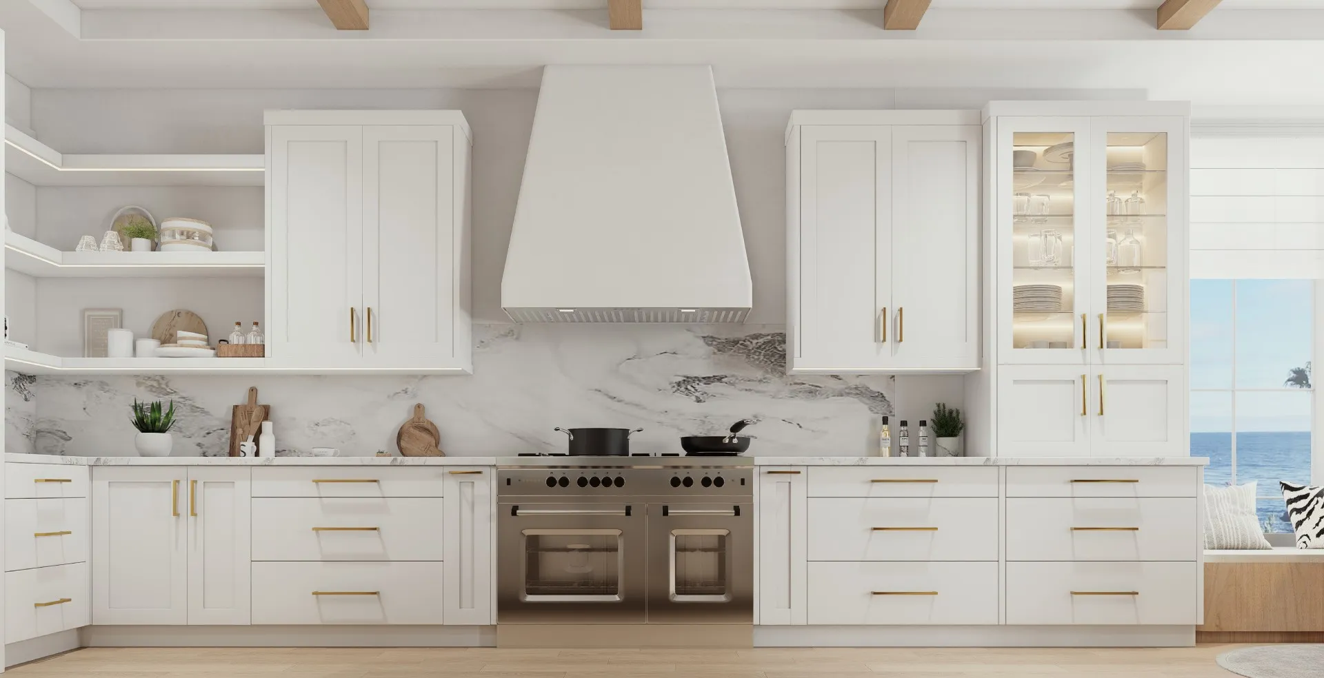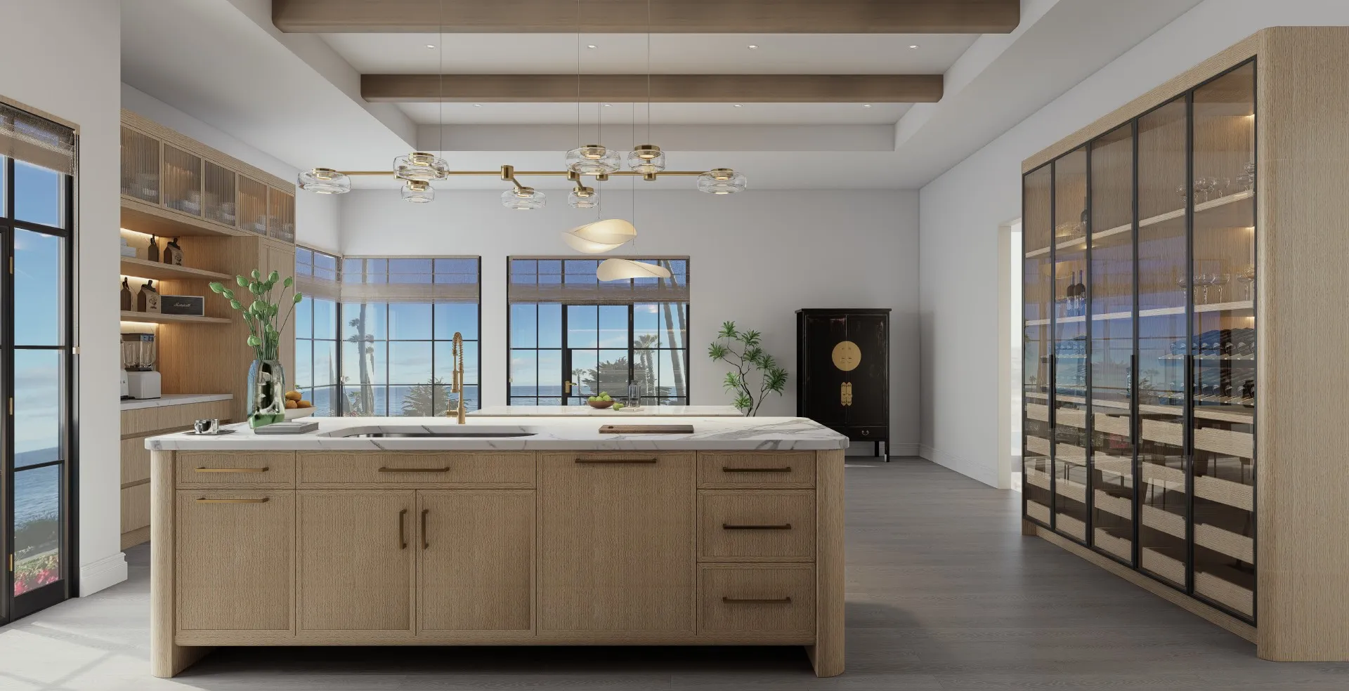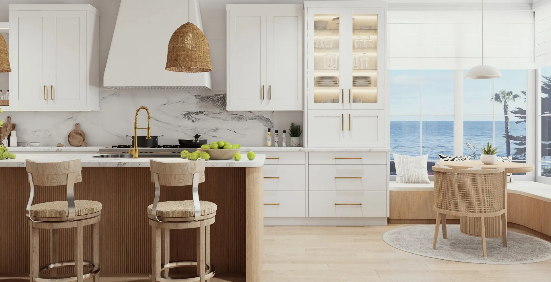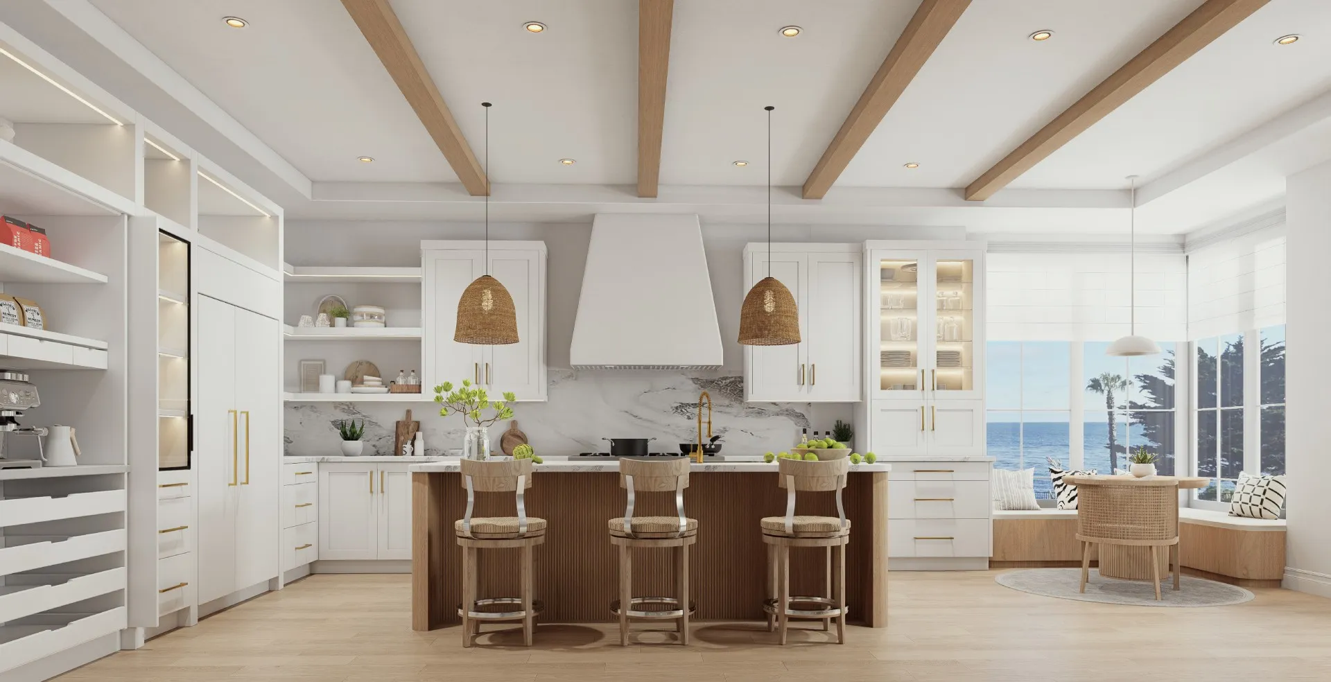 Coastal style captures the quiet elegance of California’s shoreline, light-filled, effortless,and beautifully composed. It balances relaxed comfort with architectural precision, using soft palettes, organic materials, and refined geometry to create interiors that feel open, inviting, and timeless. Rooted in MARRAM’s philosophy of modern casual sophistication,this style reflects the rhythm of coastal living—natural, elevated, and gracefully refined.